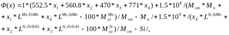 LSi, SiMn, LSi, FeSi 65, LSi, FeSi 45 – содержание кремния в силикомарганце, ферросилиции 65 и ферросилиции 45 соответственно, %;