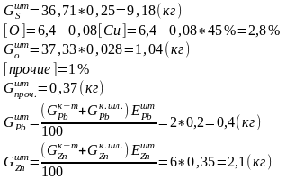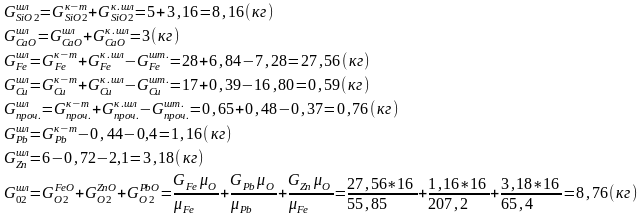 | Материал | Кол-во | Cu | Fe | S | SiO2 | O2 | CaO | N2 | H2O | CO2 | Pb | Zn |