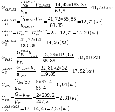 | CuFeS2 | CuS | Cu2S | FeS2 | ZnS | PbS | CaCO3 | MgCO3 | SiO2 | Al2O3 | Проч. | Всего | |