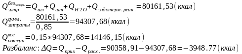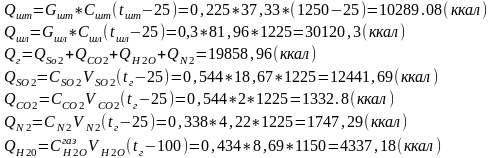 | Тепло реакций окисления | 79526,19 | Тепло отходящих газов | 20751,2 |