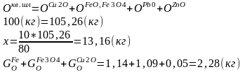 | Тепло к.шлака | 4638,9 | Тепло штейна | 10289,08 |