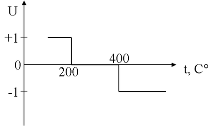 Вид релейной характеристики (рис. 4) обусловлен принципом работы САР нагрева купола в режиме нагрева воздухонагревателя. При сгорании газо-воздушной смеси происходит нагрев купола (нижняя ветвь характеристики); когда его температура достигает значения 1500 оС (максимальная температура нагрева купола воздухонагревателя составляет 1550 оС) регулятор подаёт сигнал на включение вентилятора, который увеличивает подачу воздуха (в результате снижается температура продуктов сгорания, а теплопередача от газов к насадке воздухонагревателя увеличивается, так как возрастает их количество и скорость движения по каналам насадки) и температура купола начинает снижаться. Когда снижение температуры достигает значения в 1400о С, регулятор посылает сигнал на выключение вентилятора. В результате этого температура купола снова начинает увеличиваться, так как избытка воздуха уже нет (увеличивается температура продуктов сгорания, а теплопередача от газов к насадке воздухонагревателя уменьшается).