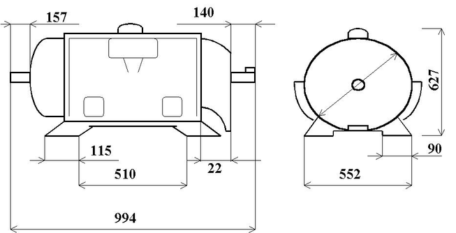 Схема и установочные размеры электродвигателя А2-91-6.