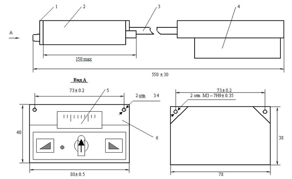 Параметры указателя положения: пределы измерения 0 . . 1, 0 . . 5 мА, 0 . . 10 В; цена деления 5%; погрешность измерения