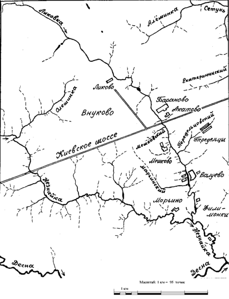 Бассейн р. Ликовки (со старой топографической карты, Киевское шоссе и поворот на Внуково перенесены с новой карты).
