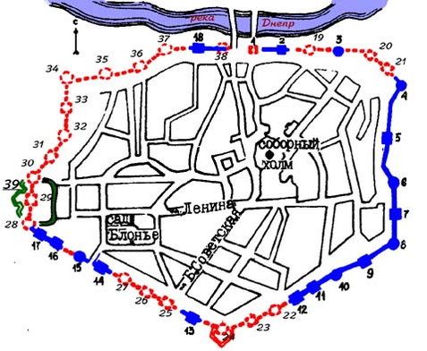 Чтобы пропустить воду многочисленных ручьев, сбегавших по балкам и оврагам к Днепру, Федор Конь сделал в северной части стены специальные трубы. Это было важным инженерным решением, освобождавшим город от излишков ключевой воды и предотвращавших тем самым разрушение береговой стены. Трубы закрывались железными решетками, не дававшими возможности проникнуть в город вражеским лазутчикам.