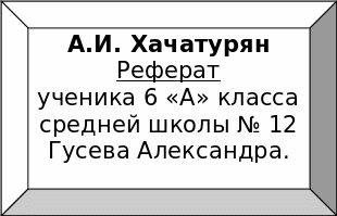 Арам Ильич Хачатурян – художник яркой, своеобразной индивидуальности. Темпераментная, жизнерадостная, привлекающая свежестью гармонии и оркестровых красок музыка его пронизана интонациями и ритмами народных песен и танцев Востока. Именно народное искусство явилось источником глубоко своеобразного творчества этого выдающегося композитора. В своих произведениях он также опирался на традиции мировой, и в первую очередь русской музыки.