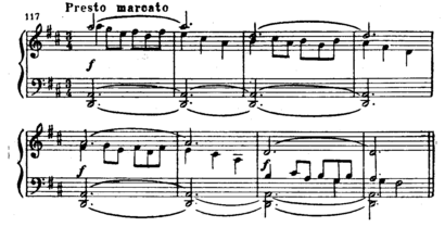 “Гангар” (“Крестьянский марш”)—распространенный в Норвегии тип танца-шествия (gang—шаг). Это старинный парный танец спокойного и величавого, торжественного ха­рактера, размеренного движения. Картина его вос­произведена Григом так, что слушатель, кажется, видит при­ближение и удаление танцующих, своеобразную пластику движения.