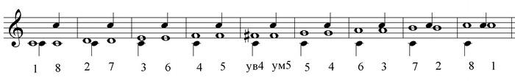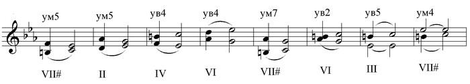 Построить от неустойчивых звуков: - две уменьшенные квинты (ум5) на VII и II ступенях - две увеличенные кварты (ув4) на IV и VI ступенях - уменьшенную септиму (ум7) на VII cтупени - увеличенную секунду (ув2) на VI ступени - уменьшенную кварту (ум4) на III ступени в мажоре и на VII ступени в миноре - увеличенную квинту (ув5) на VI ступени в мажоре и на III ступени в миноре