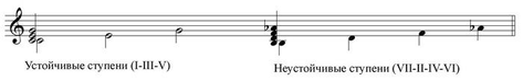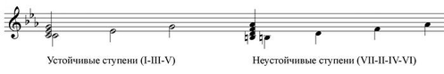 | Большая терция (б3) | I, IV, V | II, III, VI, VII |