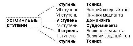 Мажорный лад (мажор): тон-тон-полутон-тон-тон-тон-полутон (например: до-ре-ми-фа-соль-ля-си-до) Устойчивые звуки (I-III-V) образуют мажорное трезвучие