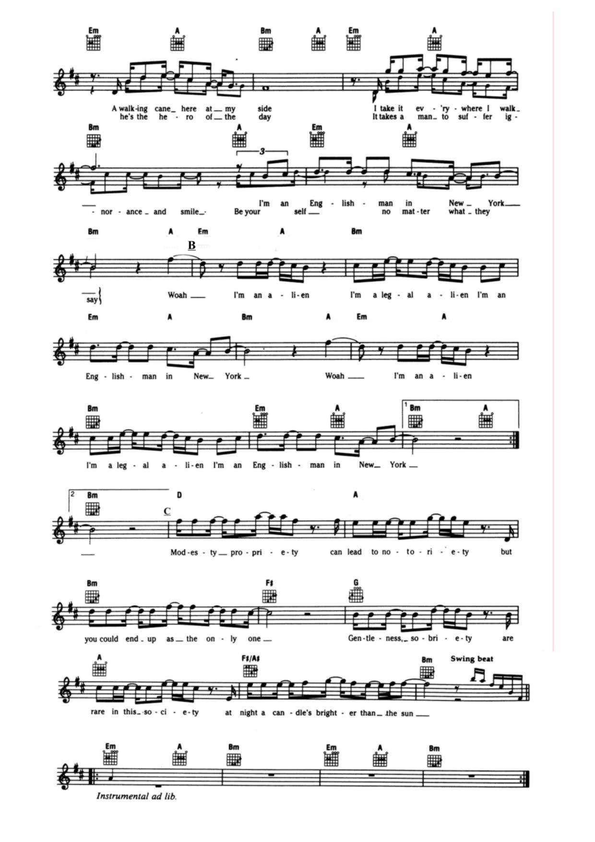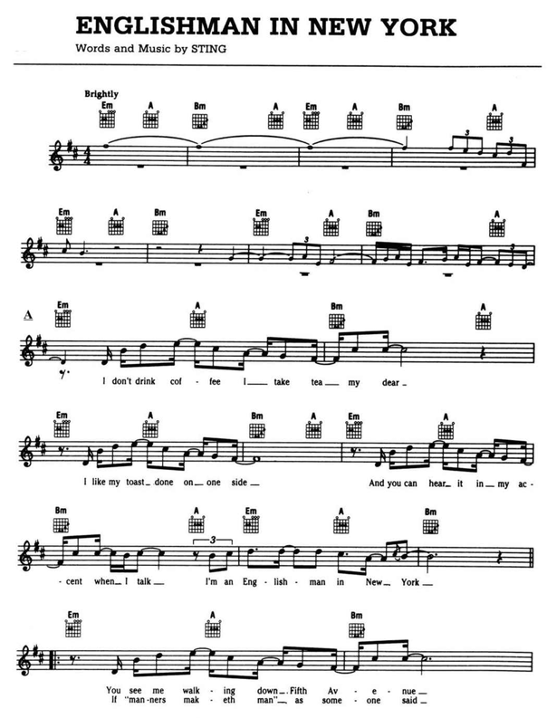 Но, пожалуй, самое необычное мы встречаем в гармонии композиции «Englishman In New York» - это то, что и часть А и часть В , построена на одном гармоническом обороте, рифовой вертушке: