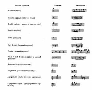 Таблица мелизмов Д'Англебера: