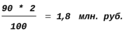 1,8 – 1,16 = 0,640 млн. руб.