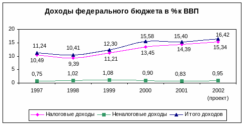 Так, если в 1997–1998 годах завышение объема доходов привело к существенному недофинансированию расходов федерального бюджета и практически к дезорганизации бюджетного процесса, то занижение объема доходов федерального бюджета в 1999-2001 годах явилось причиной получения дополнительных доходов, не учитываемых в федеральных законах о федеральном бюджете.