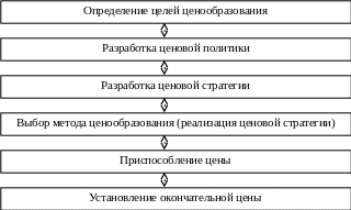 Разработка ценовой стратегии-> Выбор метода ценообразия(реализация ценовой стратегии)-> Приспособление цены->Установление окончательной цены.