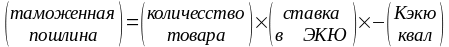 Кэкю - курс ЭКЮ, установленный ЦБ РФ на дату принятия таможенной декларации.