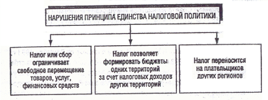 Единство налоговой предполагает, что условия налогообложения, устанавливаемые в регионах и местностях, не будут действовать искажающе на объективно складывающиеся рыночные отношения, не будут приводить к снижению доходов других регионов и местностей.