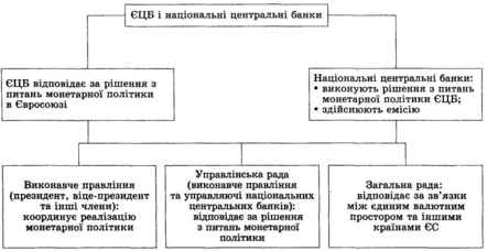 Європейська система центральних банків (ЄСЦБ) складається з Європейського центрального банку та національних центральних банків країн - учасниць ЄС1. Діяльність ЄСЦБ провадиться згідно з Угодою про заснування Європейського Співтовариства (далі - Угода) та Статутом Європейської системи центральних банків та Європейського центрального банку (далі - Статут ЄСЦБ). Керівництво Європейською системою центральних банків здійснюють директивні органи ЄЦБ. Щодо цього, Рада керуючих ЄЦБ відповідає за формулювання монетарної політики, а Виконавчий Комітет уповноважений здійснювати монетарну політику згідно з рішеннями та директивами, затвердженими Радою керуючих. В межах можливості та відповідності, а також з метою забезпечення операційної ефективності ЄЦБ звертається за допомогою до національних центральних банків стосовно виконання операцій, які становлять частину завдань Євросистеми. Операції з реалізації монетарної політики Євросистеми виконуються на єдиних умовах в усіх країнах-учасницях. Терміни "національні центральні банки", і "країна-учасниця" застосовуються до банків і країн, які прийняли єдину валюту згідно з Угодою.