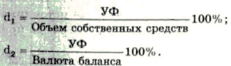 Немаловажными в анализе являются показатели, характеризующие удельный вес УФ в сумме собственных средств (d1) и в общей сумме собственных, привлеченных и заемных средств банка (d2). Увеличение удельного веса УФ в структуре собственных средств (или валюте баланса) свидетельствует об укреплении статута коммерческого банка. Показатели d1 и d2 могут быть рассчитаны по формулам: