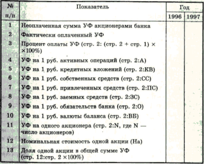 Структурный анализ собственных средств включает анализ состава акционеров (пайщиков) коммерческого банка. Для этого используются данные аналитического учета по балансовому сч.010 - лицевые счета акционеров (пайщиков), а также данные, отражающие операции по выпуску и покупке собственных акций банка. Такой анализ позволяет определить, каким предприятиям (кооперативам, частным лицам и т.п.) принадлежит большинство голосов на общем собрании и, следовательно, куда целесообразно направить деятельность банка, чтобы удовлетворить свои интересы.
