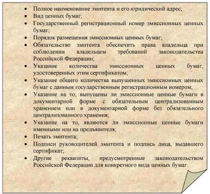 Сертификат эмиссионной ценной бумаги должен содержать следующие обязательные реквизиты: