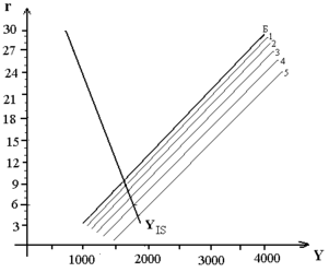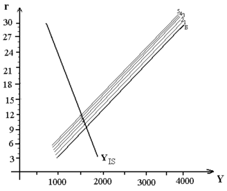 На основании данных табл. 2.9 построим рис.2.7 (Сдерживающая монетарная политика на графике IS/LM).