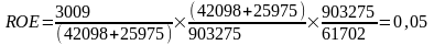 За трифакторною моделлю ROE, яка розпадається на наступні фактори: