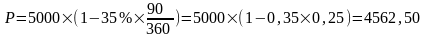 Дисконтный вексель на сумму 5000 рублей со сроком платежа 90 дней. Банковская ставка 35% годовых. Рассчитать по какой цене банк должен разместить данный вексель.