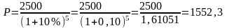 Необходимо накопить 2500 долларов на обучение. Какую сумму необходимо положить на счет в банке под 10% годовых, чтобы через 5 лет иметь 2500 долларов.