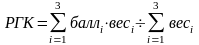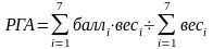 Обобщающий результат по группе показателей оценки активов (РГА) представляет собой среднее взвешенное значение показателей и рассчитывается по следующей формуле: