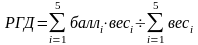 Обобщающий результат по группе показателей оценки доходности (РГД) представляет собой среднее взвешенное значение показателей и рассчитывается по следующей формуле: