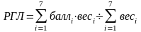 Обобщающий результат по группе показателей оценки ликвидности (РГЛ) представляет собой среднее взвешенное значение показателей и рассчитывается по следующей формуле: