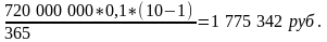 720 000 000 * 0,3% * 3 = 6 480 000 руб.