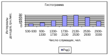2. Модальный интервал [2130-2530], т.к. частота этого интервала наибольшая (f=28). Мода: