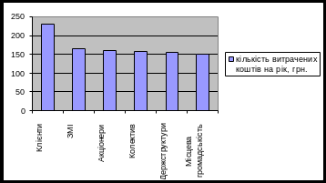 З рисунку видно, що спрямованість дій на клієнтів знаходиться на першому місці, адже саме вони приносять в банк гроші. Акціонери – це люди і структури, що ухвалюють ключові рішення, тому робота з ними також важлива. ЗМІ інформують клієнтів і акціонерів водночас будучи об’єктом дії з боку банків та інструментом дії на клієнтів і акціонерів.