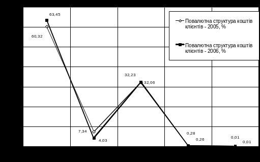 Структури залучених валютних коштів від банків та клієнтів у 2005 –2006 роках та оцінка валютної позиції банку