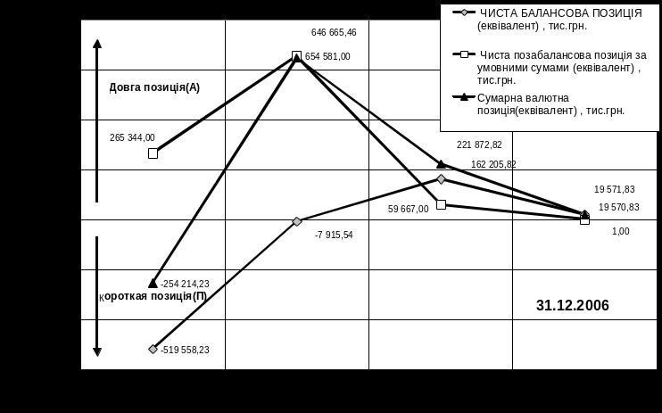 Рис.Д.4. Повалютний аналіз валютної позиції в АКБ «Приватбанк» станом на 31.12.2006 року