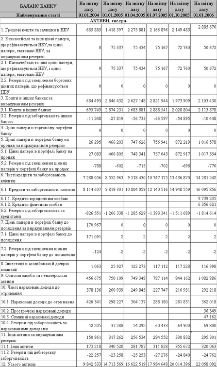 в активах АКБ «Приватбанк» станом на 31.12.2005 та 31.12.2006