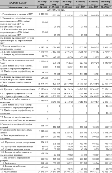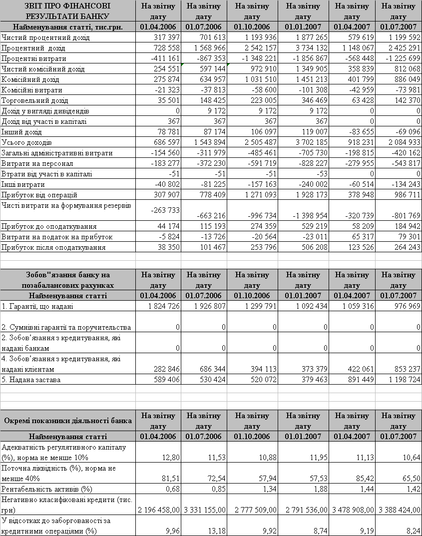 Фінансові характеристики АКБ ”Приватбанк” за 2006 – 2007 роки [70]