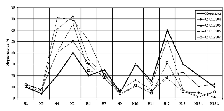 Рис.Д.5. Аналіз управління ризиками ліквідності та валютними ризиками з застосуванням нормативних