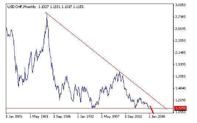 Рис.Г.4. Аналіз цінової циклічності валютної пари USD/CHF у 1976 2008 роках [73]