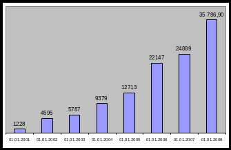 Развивая филиальную сеть АКБ «МБРР» (ОАО) расширяет географический круг кредитного обслуживания и соответственно сам кредитный портфель. Так, например, общий объем кредитных вложений, приходящихся на долю филиальной сети, на начало 2008 года составил 14 236 миллионов рублей. Доля филиалов в кредитном портфеле банка за 2007 год увеличилась с 36 % до 40 %, или в абсолютных значениях с 8 815 миллионов рублей до 14 236 миллионов рублей (рисунок 4.3).