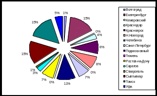 Рисунок - 4.3 Диаграмма структуры кредитного портфеля региональной сети по филиалам на 01.01.2008 год