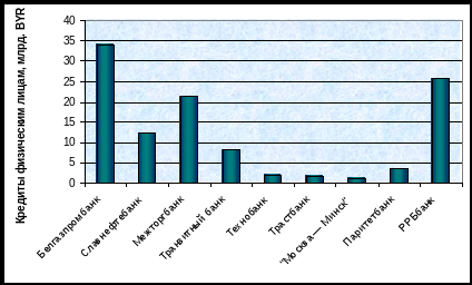 С другой стороны, несмотря на то, что потребительское кредитование физических лиц является достаточно доходным и практически безрисковым (как показала банковская практика последних лет, белорусские граждане показали себя исключительно порядочными плательщиками по кредитам), далеко не все белорусские банки оказались готовы к такому развитию событий (это хорошо видно из рисунков 3.1, 3.2).