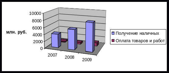 Рисунок 2.5 – Динамика изменения отдельных видов операций с использованием пластиковых карт за 2007-2009 гг