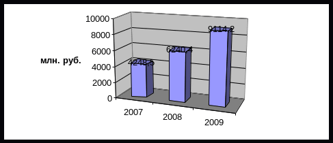 Рисунок 2.4 – Динамика изменения общего объема операций с использованием пластиковых карт за 2007-2009 гг.