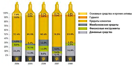 За 2008 года прирост активов обеспечили показатели: