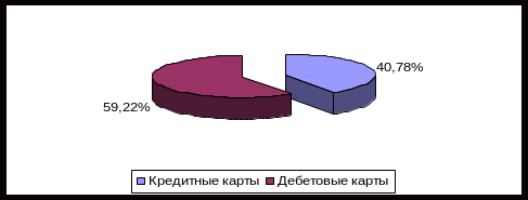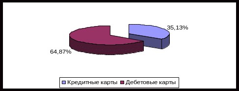 Таблица 2.12 – Соотношение кредитных и дебетовых карт в ОАО «МДМ Банк»