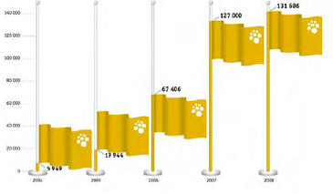 В 2008 году объем выпуска кредитных карт увеличился на 4,47%; на 29,74% превышал объем выпуска кредитных карт.